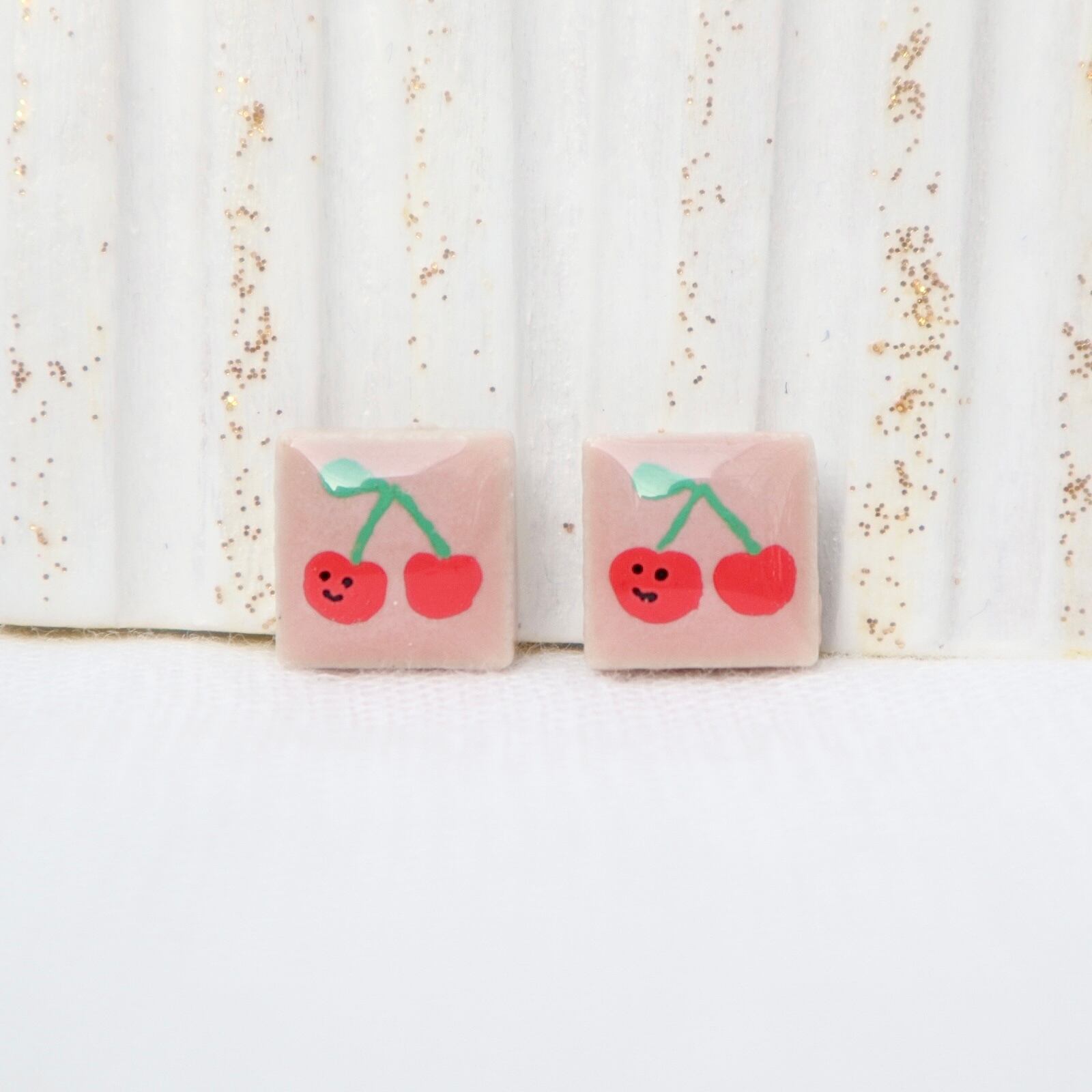 ピンク色のタイルにニッコリさくらんぼを描きました ☺︎