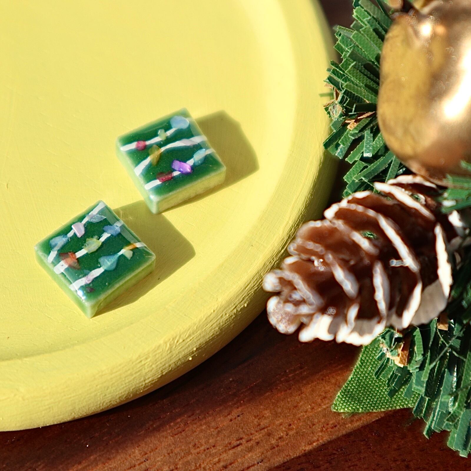 キラキラの装飾が、光に当たるとより光って耳元を綺麗に、可愛くしてくれる、クリスマスツリーをイメージしたピアスです!